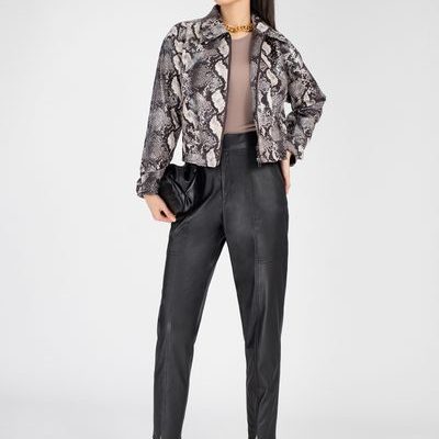 Áo khoác da kéo khóa dáng ngắn cổ bẻ dài tay FKM7647