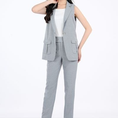 Áo khoác chất liệu lụa dày cổ vest tay hến BKM52442