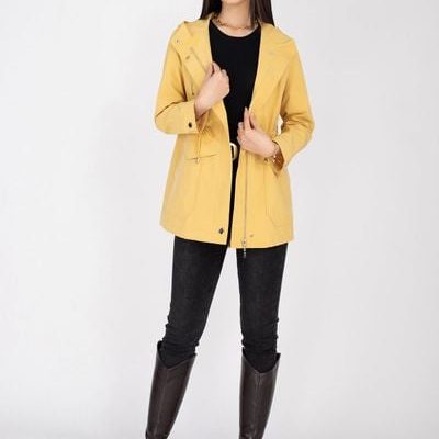 Áo khoác chất liệu vải gió có mũ, túi ốp dây rút eo FKM9638