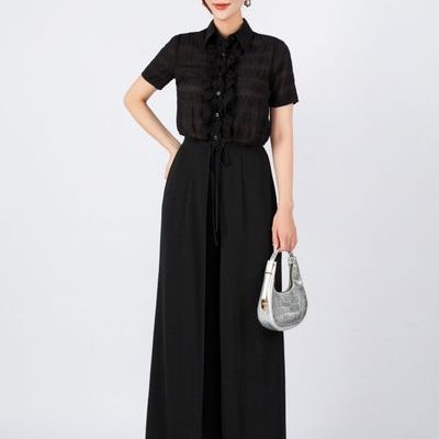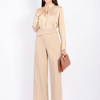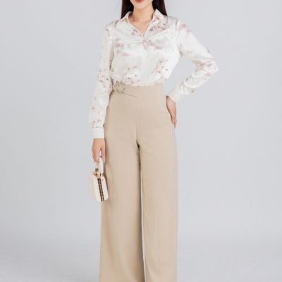 FQD31096 Quần công sở vải phi cát dáng suông ống rộng thân phối hai tà buộc dây tạo kiểu
