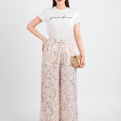 FQD31117 Quần dạo phố vải lụa xốp dáng suông dài cạp chun thắt nơ tạo kiểu