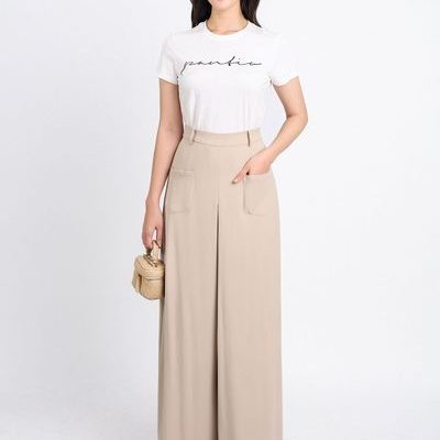 FQD31111 Quần công sở vải cotton dáng suông ống rộng hoạ tiết túi thân trước khoá thân sau