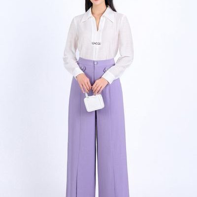 FQD31120 Quần công sở vải tuytsi dáng suông dài eo đính khuy trang trí cài khoá thân trước